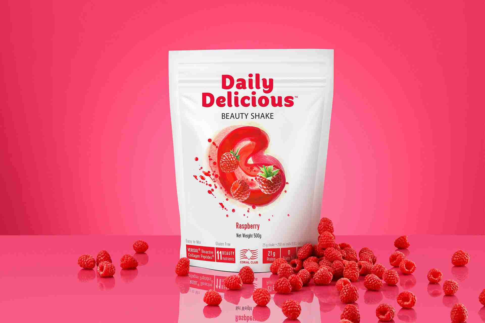 Daily Delicious Beauty Shake cu aromă de zmeură, 500 g / 20 porții