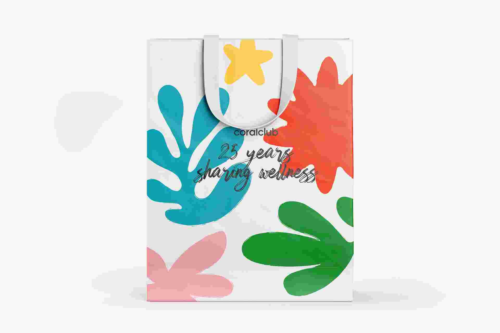 Pungă cadou pentru anul aniversar Coral Club. Este ideală pentru a dărui celor dragi cadouri de îngrijire a sănătății.